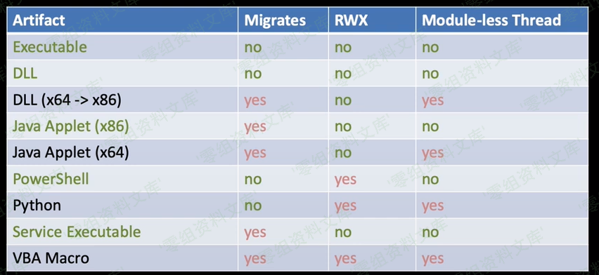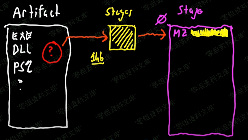 - 在攻击链的第一部分依旧是artifact这样一个包含了payload的全功能被控制程序,函数或者一些特征码会被检测到;