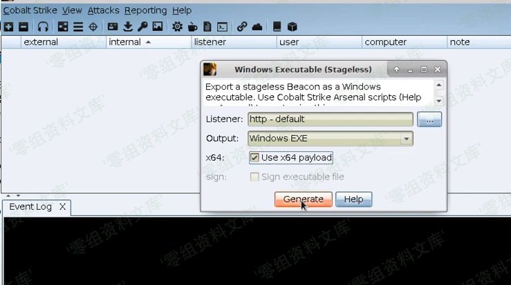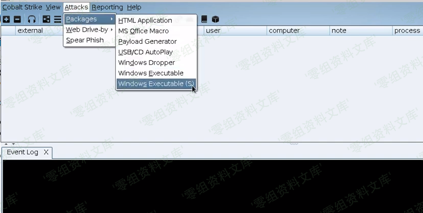 下载方法Help->Arsenal下载Resource Kit,这个同样需要授权,下载完成后将resources.cna脚本加载使用,然后按照生成可执行文件的步骤操作即可。