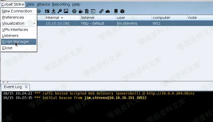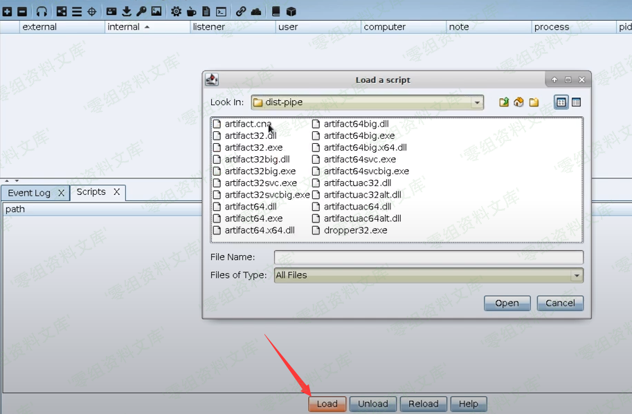 - 导入脚本,Cobalt Strike->Script Manager,从该文件夹中加载artifact.cna脚本,然后按照生成可执行文件的步骤操作即可。
