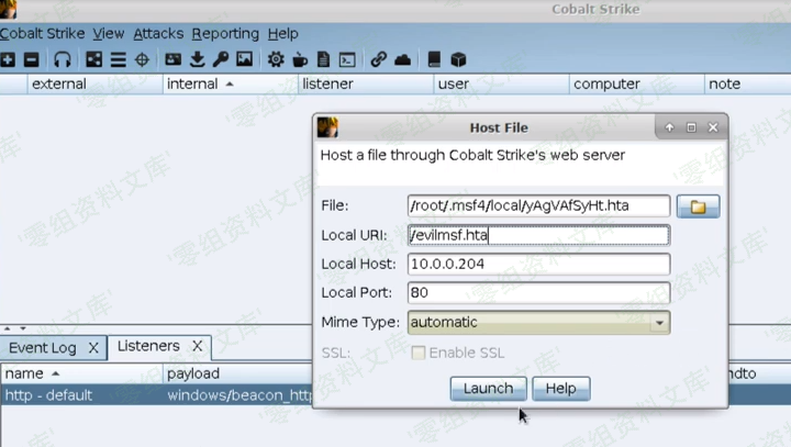 - 生成一个木马,使用Cobalt Strike加载生成一个payload,目标及其访问后获得Beacon