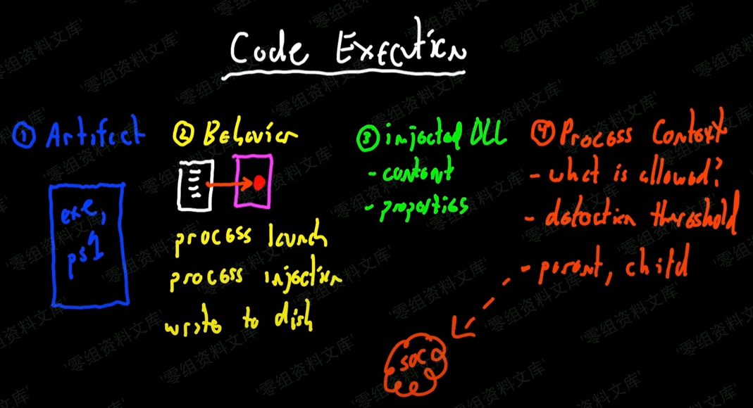 - 一旦我们的artifact在目标机器上运行,那我们就会看到一些行为,比如我们刚好有个office宏运行在一个临时的进程中,并且将我们的payload注入到进程中,这个时候会产生的行为可能就会被检测到,比如启动一个程序、注入一个新的或者已经存在的进程、写文件;