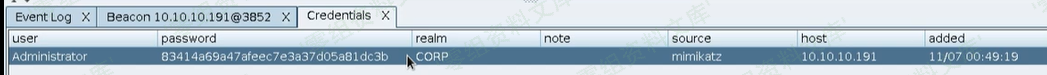 - 使用 - dcsync来提取用户哈希,可以在- Credentials面板上看到提取到的hash- dcsync [domain] [DOMAIN\user] dcsync [domain] - 0x04 Trust Material