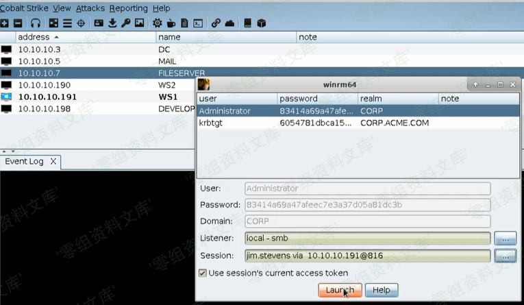 如果你有目标主机管理员用户的用户名和它的密码,你可以这样做- # 创建一个beacon spawnas DOMAIN\user password # 通过make_token命令来创建token以传递凭据 make_token DOMAIN\user password # 当你提供的用户名或者密码有误时,你对远程主机进行的任何操作都会报错 # make_token命令执行后会拷贝你当前使用的token,然后给出一个新的logon session