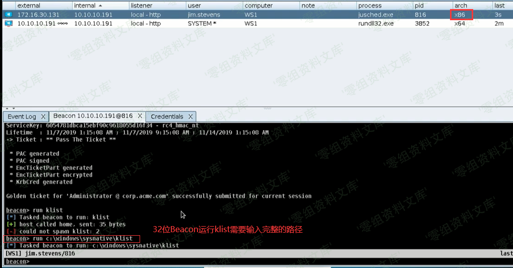 在进行这个过程中,会使用到cmd.exe回传token到Beacon,还会对内存进行读取操作,pth命令需要你在一个有权限的环境下使用。通过cmd.exe执行命令动作比较大,不建议使用pth命令。使用rundll32.exe创建64位进程可能会出问题,建议使用dllhost.exe。