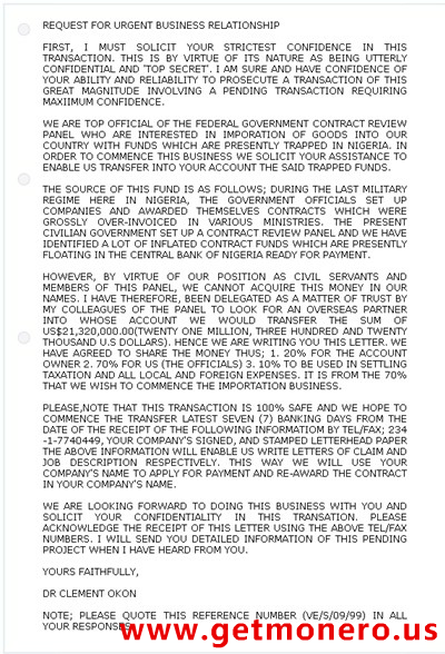 这种骗术在之前的纸制信件里就开始流传,后来是通过传真,再到后来的电子邮件,已经有几十年的历史了,可谓“经久不衰”。由于不断被冒用名义,尼日利亚政府在 1991 年不得不公开发表声明不存在这回事,不过这封邮件直到今天依然很流行。微软的研究人员想弄清楚的是,这封文笔都不通顺、谷歌就找到的邮件为什么还一直在被骗子使用。他们为何不写些生动形象、新颖逼真的版本?