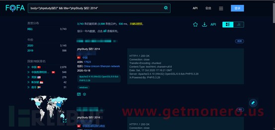 首先信息收集一波确认目标,:fofa: body="phpstudy探针" && title="phpStudy 探针 2014"