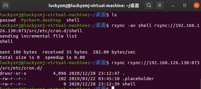 rsync -av shell rsync://192.168.126.130:873/src/etc/cron.d/shell